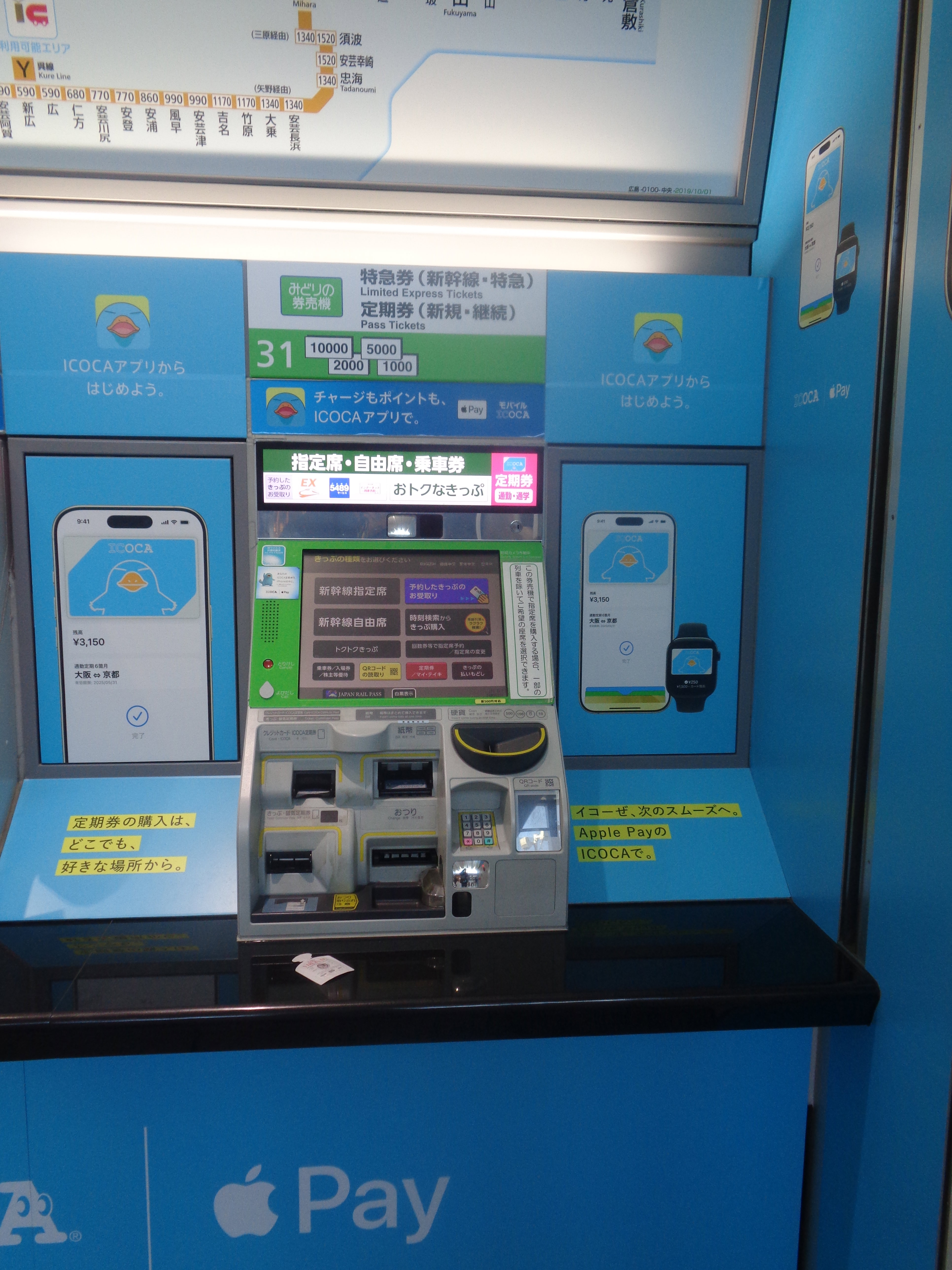 広島駅のものです。このような見た目をしていますが、塗装色や画面表示には各社ばらつきがあります。また後継機種「MXV10」が導入されており、こちらの端末も登場から約10年以上たっており引退が予想されるので、今のうちにきっぷを購入されることをお勧めします。