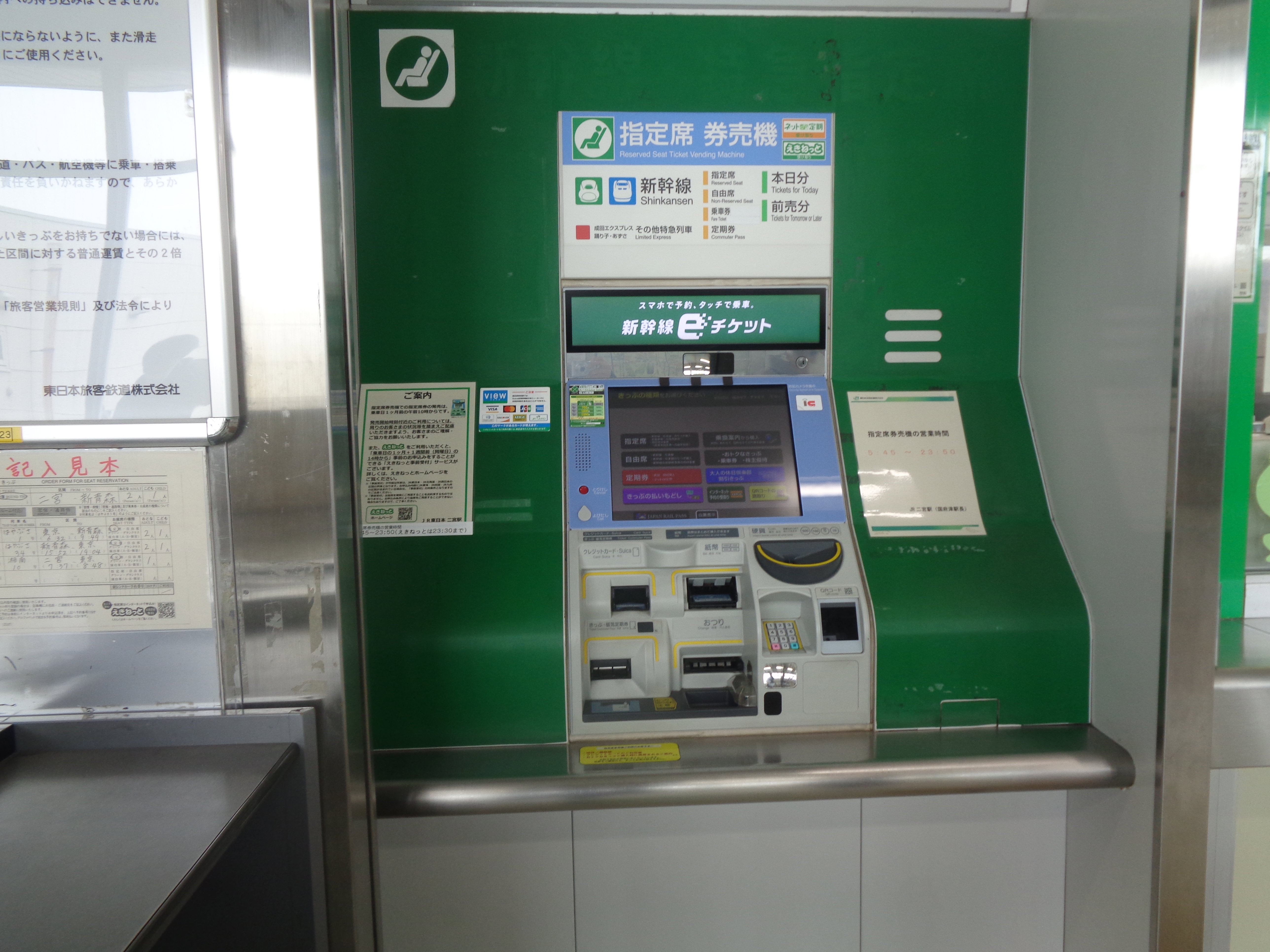 今回は、現在における指定席券売機主力機種のMV50について紹介します。MV50は、様々なJR駅及び一部の私鉄駅(近鉄名古屋駅)で営業している指定席券売機で、通常型及びみどりの券売機プラス(オペレーター対応型)が存在します。