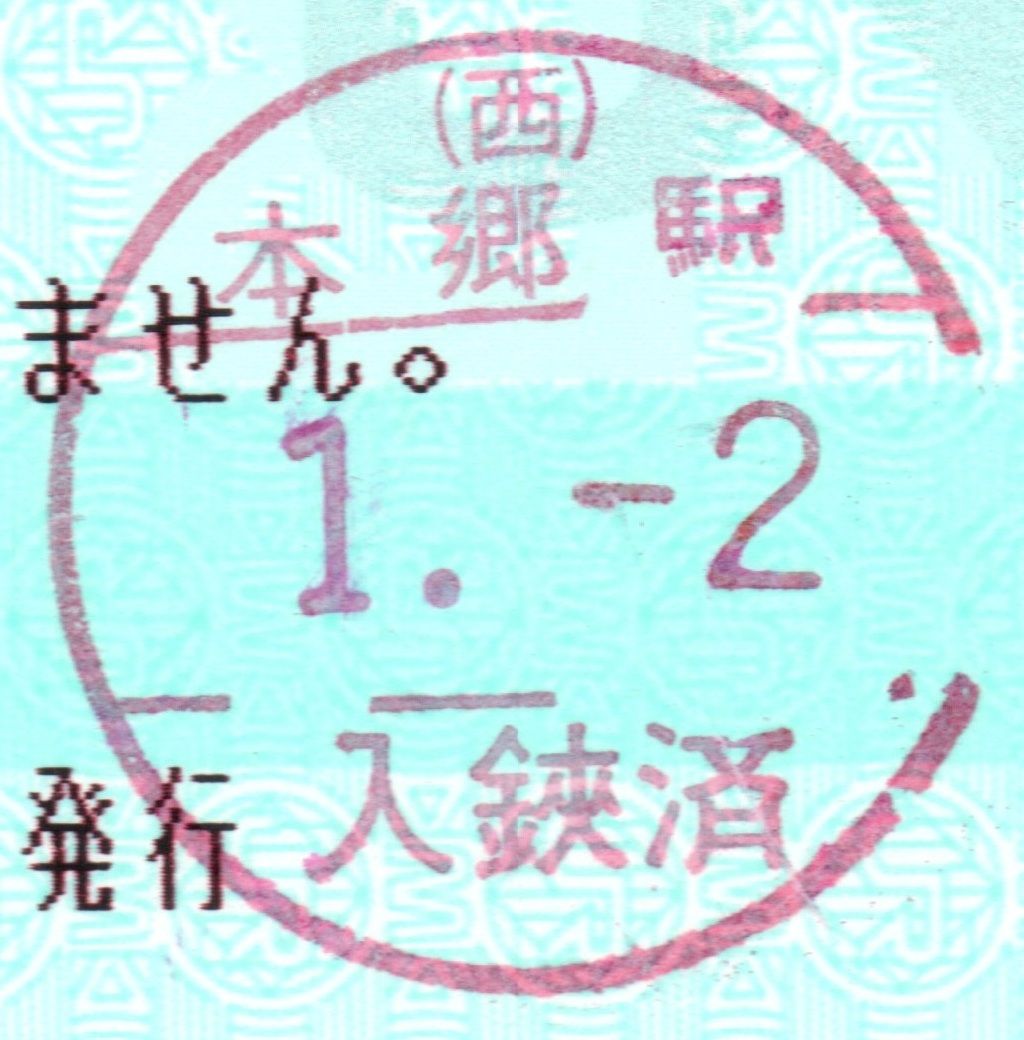 入鋏印です。広島支社・岡山支社と共通のタイプで、JR東海の入鋏印と似ているものです。JR西日本は死者によって入鋏印のデザインが違っており、その境界線を探しています。近畿統括本部は名鉄風のデザイン、中国統括本部はJR東海風のデザイン、金沢支社はJR東日本風でした。