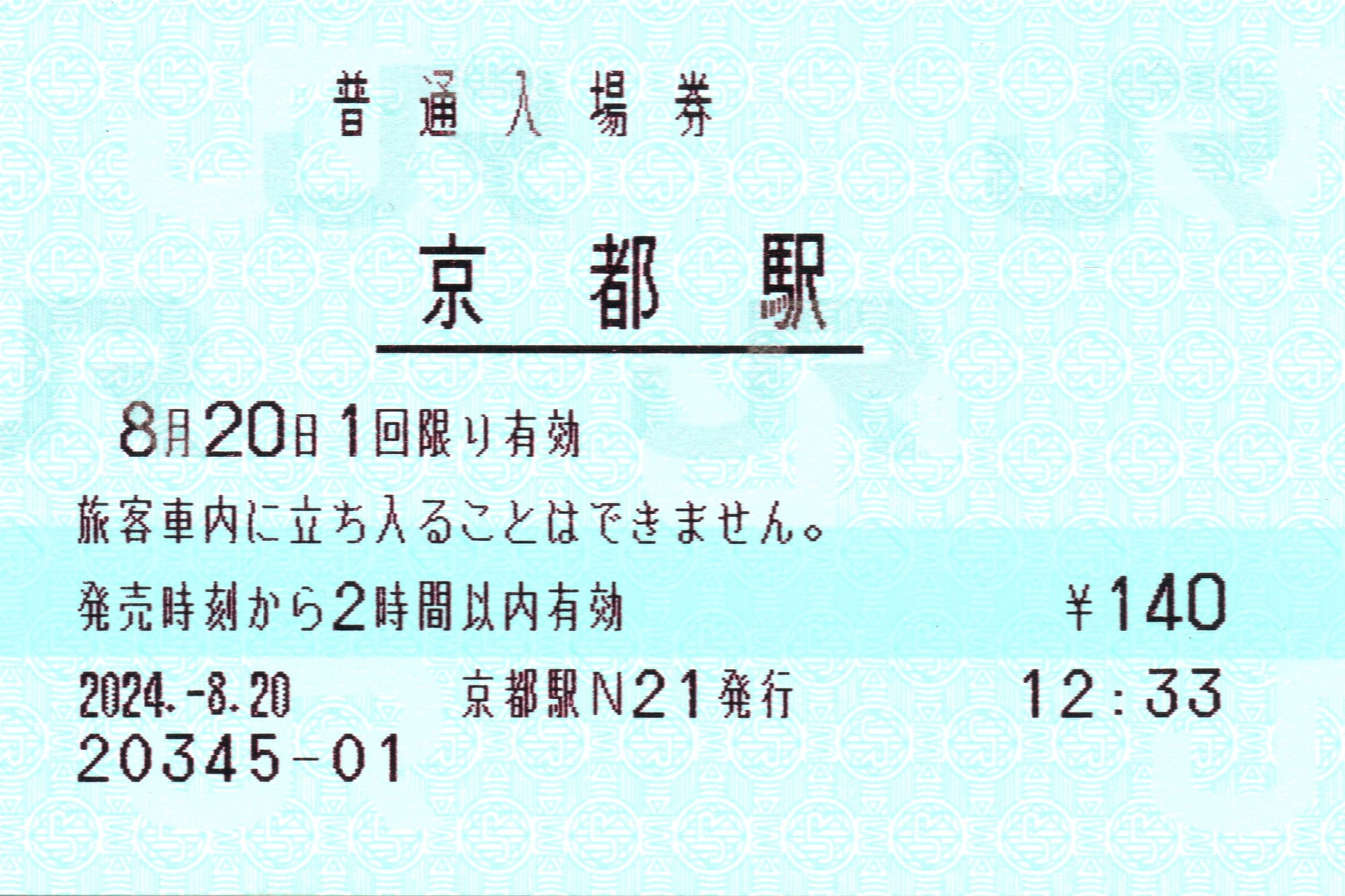 | (省略) | 京都駅N4 | 〇 | ![]() | 2024年8月 擦れなし |