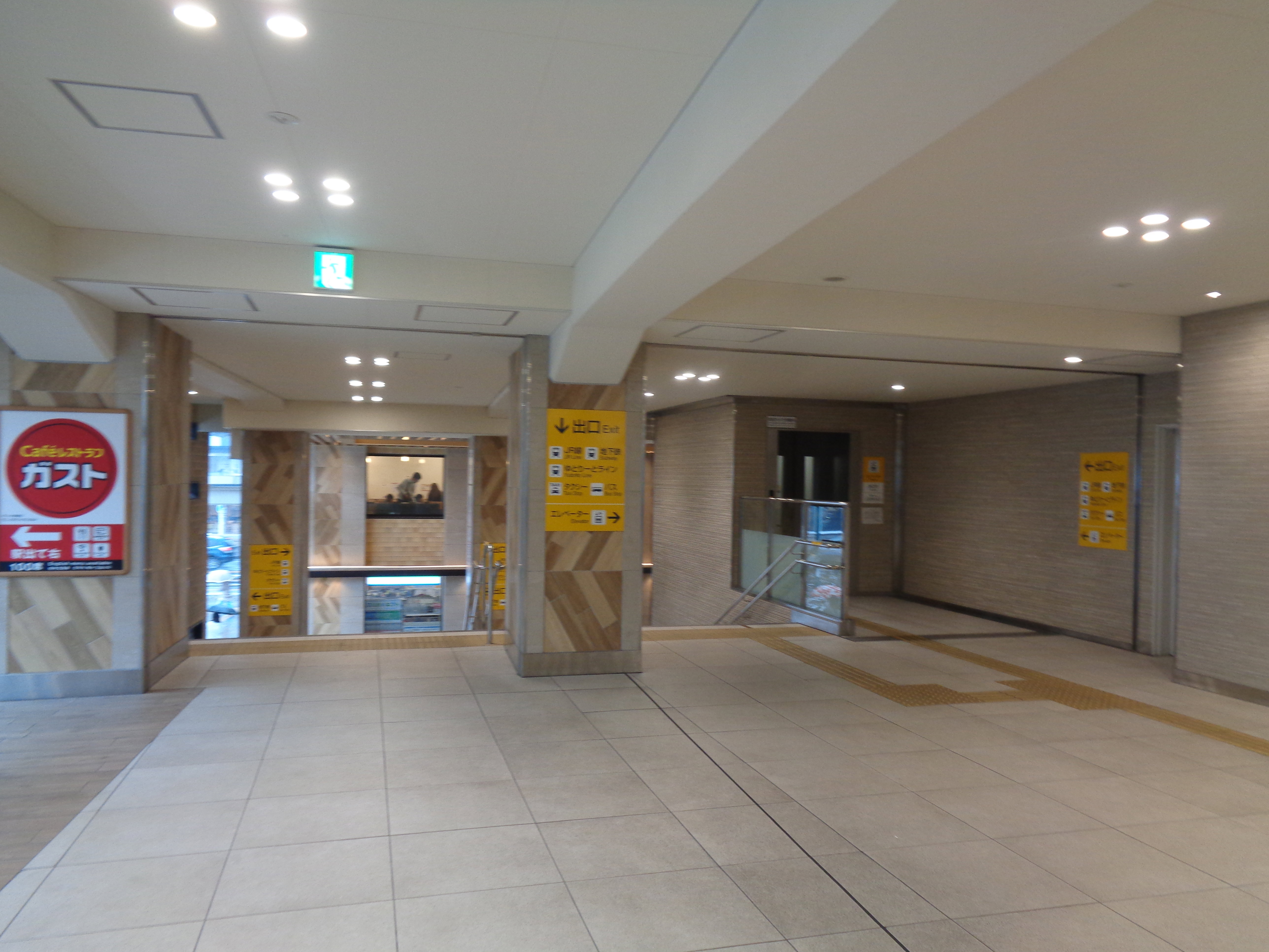 こちらの画像の方がエレベーターの存在がわかりやすいでしょう。右側に映っている通路から、エレベーターを使用することができます。エスカレーターはありませんが、バリアフリー対応となっています。JRと乗り換えの際には1度下まで降りなければならないので注意が必要です。