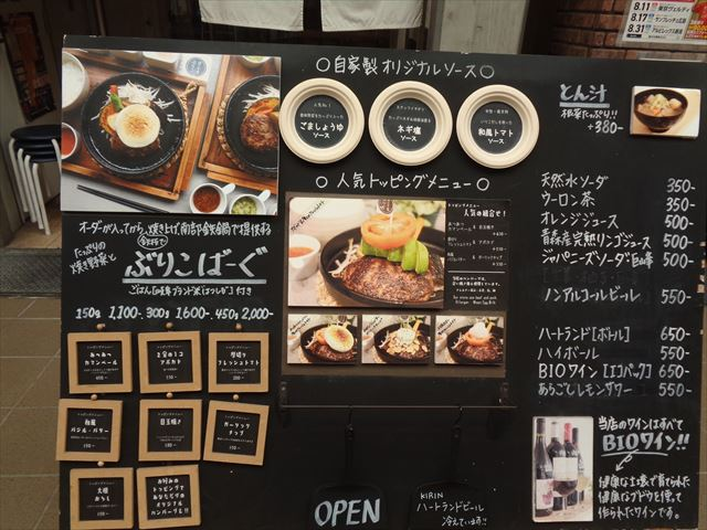 まずは、「ばーぐ屋 ぶりこ」というお店です。このお店では、ハンバーグなどの料理を提供されているようです。またワインなどのお酒も多数置かれています。